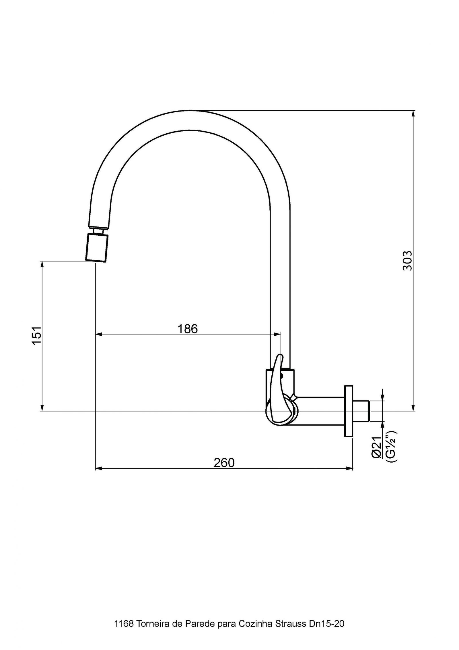 TORNEIRA PARA COZINHA PAREDE DN15-20 STRAUSS